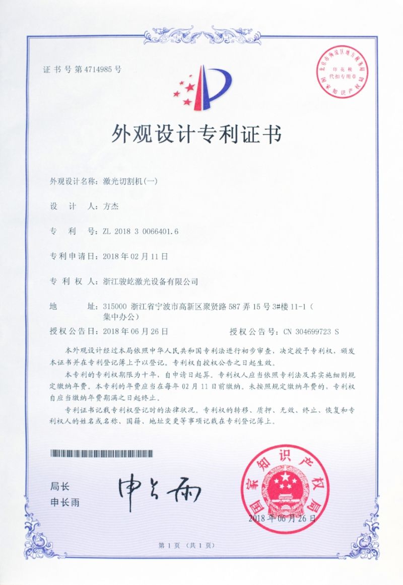 外觀設(shè)計專利證書